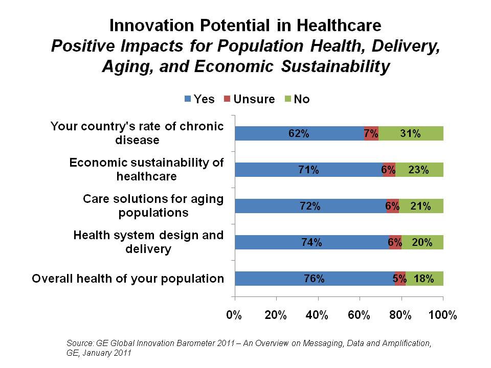 While innovation, writ large, is an engine for economic growth, it’s especially going to positively impact many aspects of health and health care, based on GE’s Global Innovation Barometer 2011.