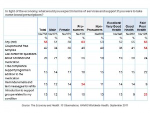 - Most Americans look for more support from their prescription drug providers due to the economic downturn, such as couponing and sampling, and support for adherence.