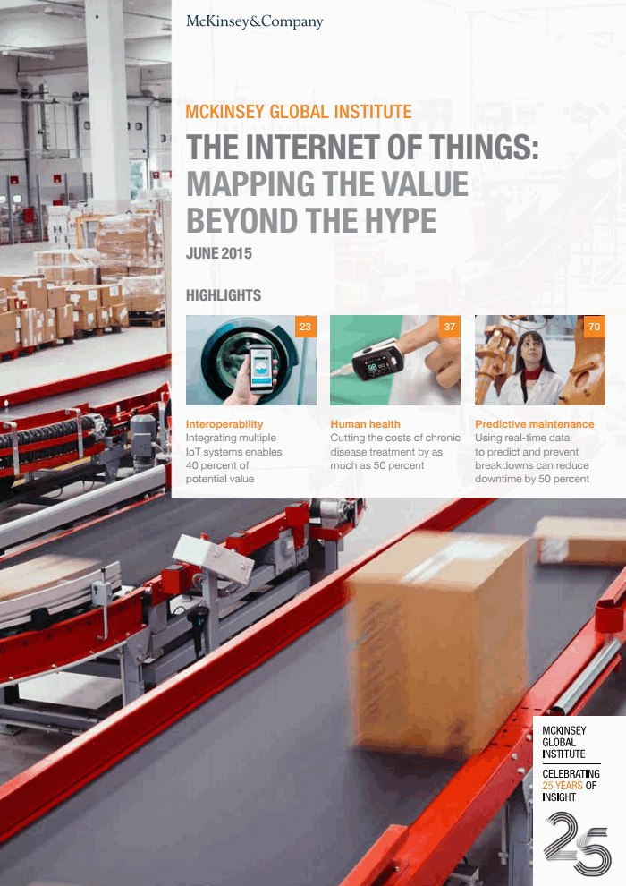 ‘Tis the summer of big, smart reports covering the Internet of Things (IoT) impact on health and fitness. Just this month, three of these missives have come to my inbox, and they all contribute sound thinking about the topic. Today, tomorrow and Friday, I’ll cover each of these here in Health Populi. We begin with McKinsey Global Institute’s The Internet of Things: Mapping the Value Beyond the Hype.
