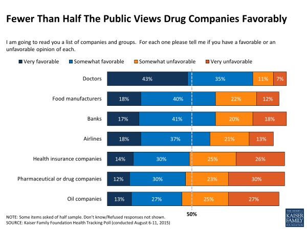 The August 2015 Kaiser Family Foundation Health Tracking Poll focuses a lot on the pharmaceutical industry. The link to the poll is here: http://kff.org/health-costs/poll-finding/kaiser-health-tracking-poll-august-2015/
