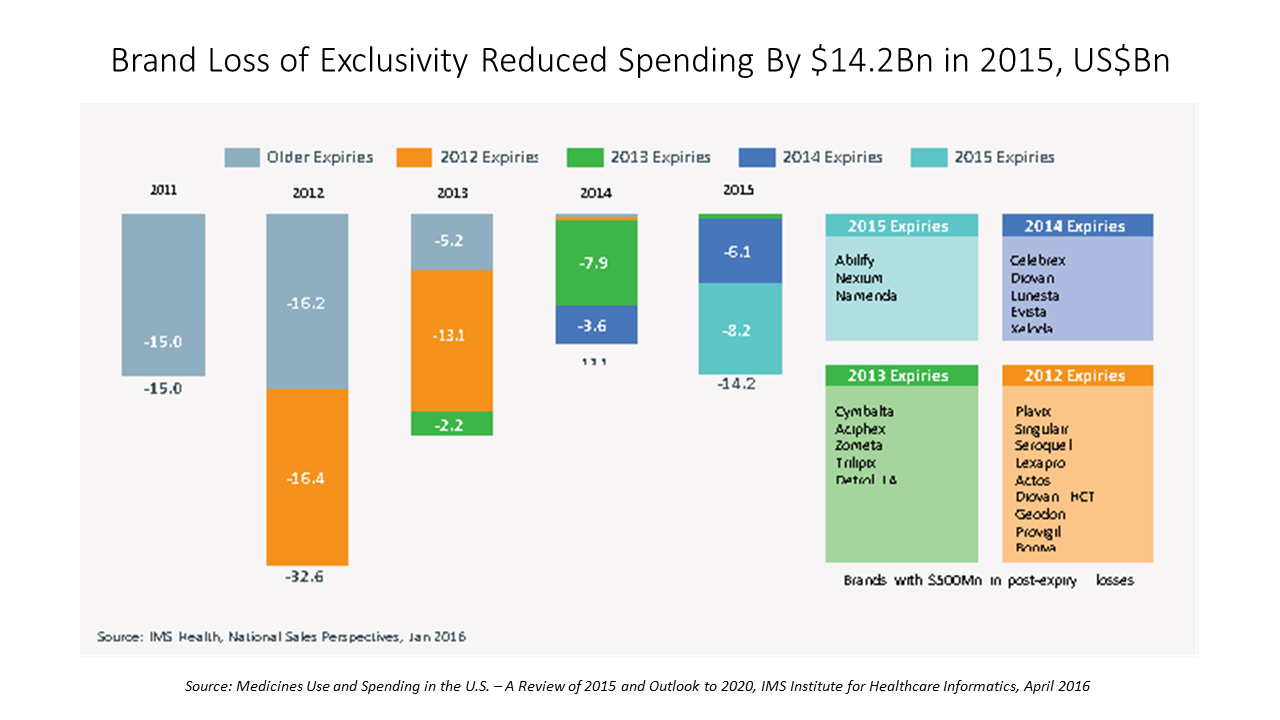 Brand Loss of Exclusivity Reduced Spending US 2015 IMS April 2016