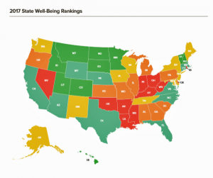 Gallup Wellbeing Rankings by State 2017 WV lowest