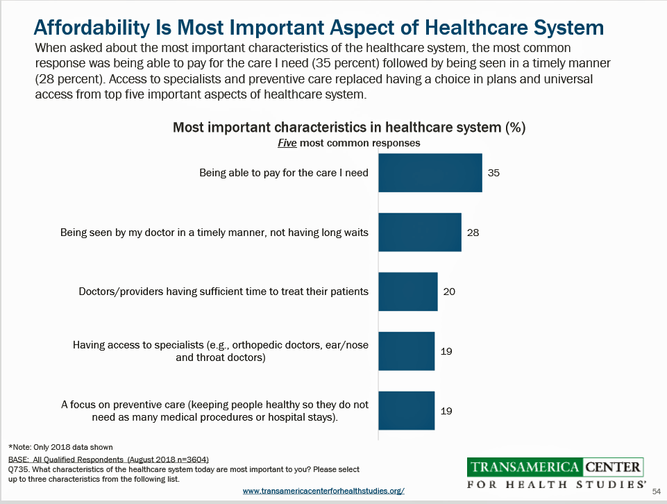 TransAmerica 2018 affordability most important aspect of healthcare system