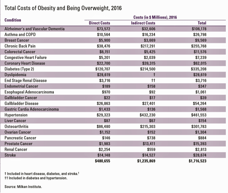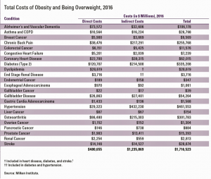 Milken Obesity 2018 costs by condition