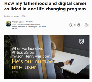 Andrew Bower LinkedIn post on son and Avent