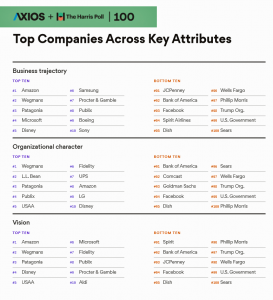 Axios Harris Poll top cos across attributes business trajectory character vision