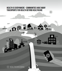 Health is Everywhere Karl graphic of touchpoints for health beyond healthcare