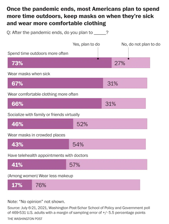 Washpo Schar poll July 2021 once COVID ends new activities