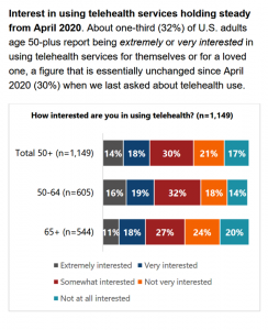 AARP telehealth use over 50 holding steady from April 20 by age break