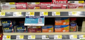 CHPA Dollar Store pain OTC meds shelf at Dollar Store