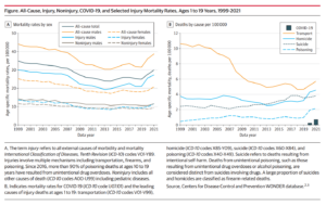 New crisis of increasing all cause mortality in US kids JAMA 3-13-23 graphics