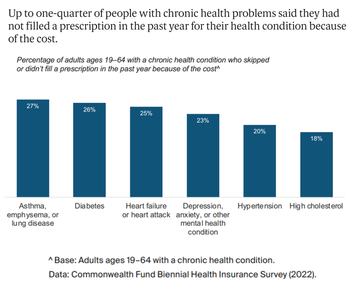 CMWF 2022 state of health insurance script fills lower among the sick due to lack of affordability
