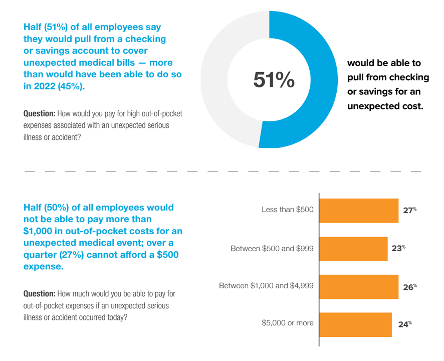 Aflac 2023 24 can afford to pay 1K in emergency med expenses