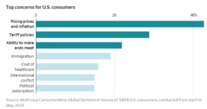 WSJ McKinsey consumer survey cost of goods and tariff policy then making endds meet top 3 concerns as of May 2025