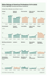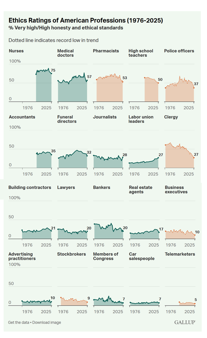 Gallup Trust and Honesty Poll Trust by occupation