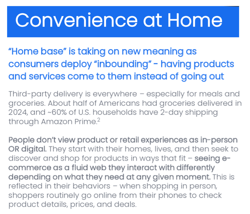 Convenience is another key pillar among health consumers, explained in detail in the report. “The ‘home base’ is taking on new meaning as consumers deploy ‘inbounding,'” with products and services coming to peoples’ doorsteps. This reflects consumers’ demand for omni-channel services delivered across platforms which is impacting every aspect of peoples’ daily lives — indeed for retail, but also for healthcare. Consider…
