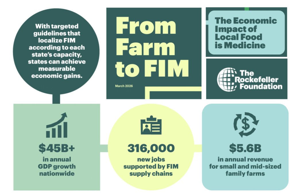 One of Stacey’s go-to evidence-based resources for her column was the recently-released Rockefeller Foundation report, From Farm to FIM: The Economic Impact of Local Food is Medicine.