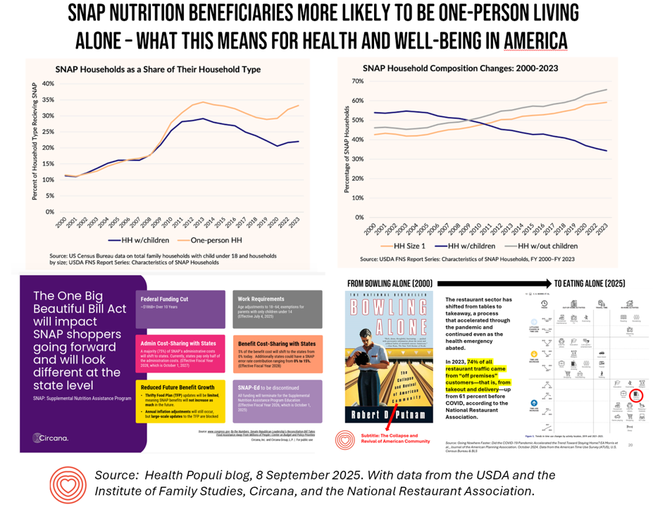 Today, 1 November, the Supplemental Nutrition Assistance Program (SNAP) was to be shuttered and unfunded in at least 25 states until the U.S. Congress agreed to re-open the Federal government and fund this safety net for food security that covers 42 million people in America. Those 42 million people included 16 million children, about 39% of SNAP program beneficiaries. Then last night, a Federal judge intervened to order President Trump’s administration to reinstate funding for food assistance just-in-time. At this moment, I cannot tell you what the exact timing nor the amounts beneficiaries will receive will be.