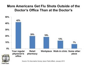 4 in 10 Americans got flu shots in this epidemic season, and most of these didn’t receive their immunization in their doctor’s office.