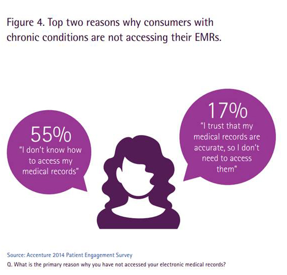 Accenture also found, in another survey of U.S. consumers, that people want to access their electronic medical records but most still don’t know ‘how’ to do that. While 87% of people believe it is important to have control over their personal health data, 55% believe they have little or no control over it, which yields a big confidence gap among U.S. health consumers who are seeing their data moving from paper to digital medical records as their health providers have been adopting and implementing EMRs over the past few years in response to incentives in the HITECH Act. (For more on this, see 4 in 5 doctors in American use an EHR, but most not ready for Stage 2 here in Health Populi). My take on Accenture’s consumer/EMR survey is that in a world of digital health data, sicker people are willing to trade off (some) privacy risks.