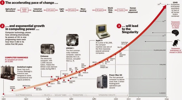 Three laws that shape the digital world have kicked into high gear, changing our lives in ways we cannot yet imagine. Those three forces are Metcalfe’s Law (in brief, the increasing value of networks), Moore’s Law (that processing power doubles every 18 months, or even faster), and the Law of Accelerating Returns (the fast pace of technological change).
