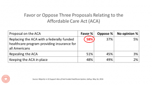 Given a choice, note that 72% of Americans who support the ACA would be in favor of replacing it with a single-payer, national health system. And surprisingly, 4 in 10 Republicans favor this single-payer healthcare system.