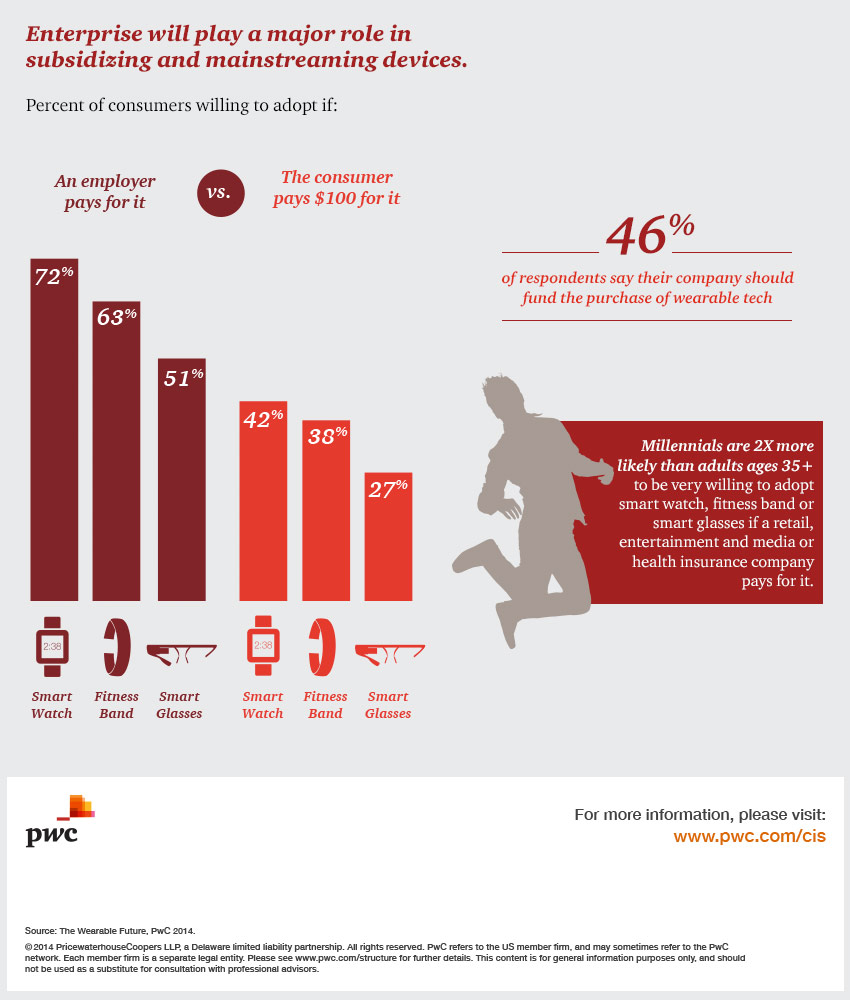 Who will buy at what price? It is encouraging to see the growing health and fitness supply side at CES populated with more products that have been FDA-cleared for serious clinical use. There are better designed products for consumers to gauge blood pressure and ECG, and to conduct ultrasound tests. Other FDA-cleared or -pending devices treat pain in the expanding category of digital therapeutics and other relief devices for sinus and neuro-muscular pain. There’s clearly consumer “need” to alleviate pain and prevent heart attacks. But then there’s the question of “demand” we economists ask. Demand is need filtered by a consumer’s willingness-to-pay for something. And when it comes to medical versus “wellness” or “fitness” products, it’s unclear just what consumers are willing to pay for. This is new-new territory, the consumer healthcare pricing game. I was intrigued to hear from Patrick Freuhler, CEO and Founder of Audicus, the OTC hearing aid innovator, that his company is considering a kind of subscription pricing plan that would charge the user a set cost on a monthly basis in lieu of the entire price up-front for the device. Consumers have surely warmed up to subscriptions, just like monthly mobile phone charges that appear on credit card statements. Value is in the eye of the beholder: we are in an era of health system value-based payment, and one for consumer health as well. For some context, the chart from a recent PwC survey found that if a consumer had to pay $100, 38% of people would buy and use a fitness band; but if an employer subsidized the cost, 63% would use it. While a fitness band isn’t a pain relief device or hearing aid, this scenario does give some indication of the complexity of people’s cost thresholds for wearable med-tech.
