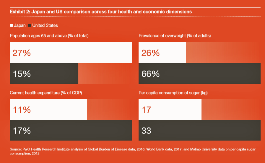 PwC SDoH Japan vs US on health and econmoic dimensions