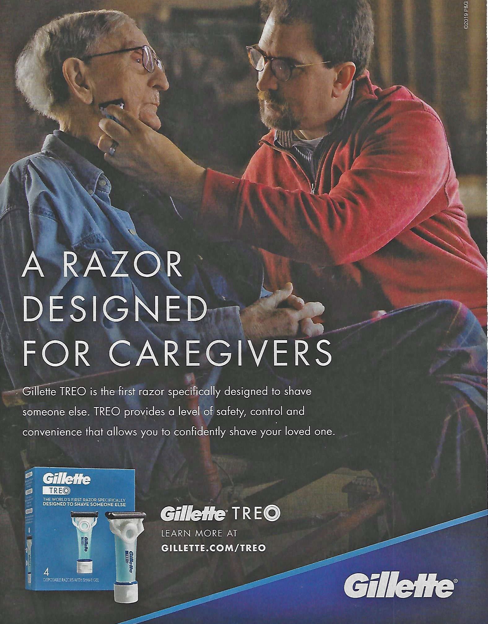 Gillette TREO ad October 2019 AARP Magazine PNG razor for caregivers