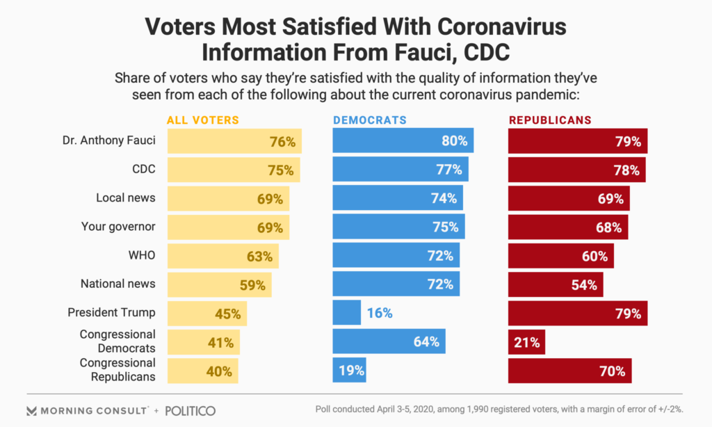 Dr. Fauci, stay strong. Your brand certainly is. By April 8, 2020, Dr. Fauci was the most trusted source of coronavirus information among U.S. voters in America.