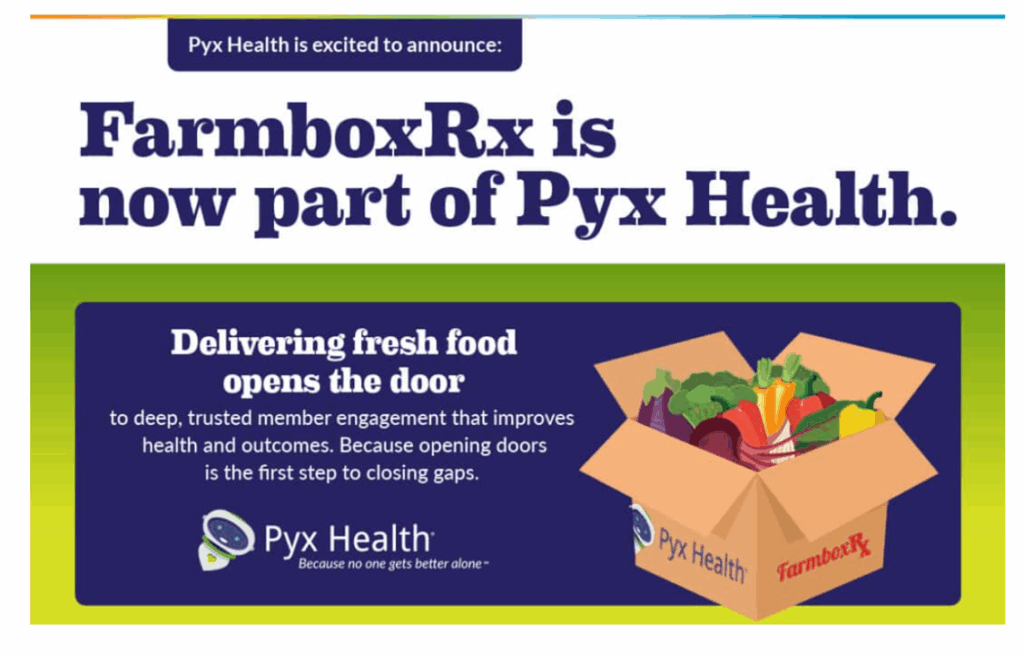 Health Populi’s Hot Points: And just like that overnight, we see that Pyx Health acquired FarmboxRx — bringing together two organizations that together can address the growing challenges of food security, “eating alone,” and medically-tailored meals. This alliance bolsters the non-medical drivers of health that can make a huge difference in people’s individual health outcomes in in driving communities’ population health, separate from medical care.